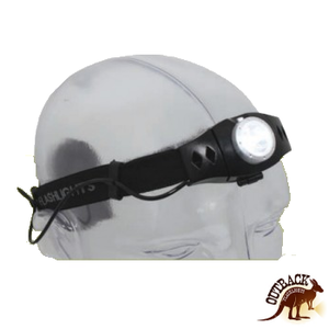 The Stockman headlamp has a 1 watt LED, dimmer control,60 Lumens,90 degree tilting head,elastic headband, rain resistant. Includes 3 AAA batteries.